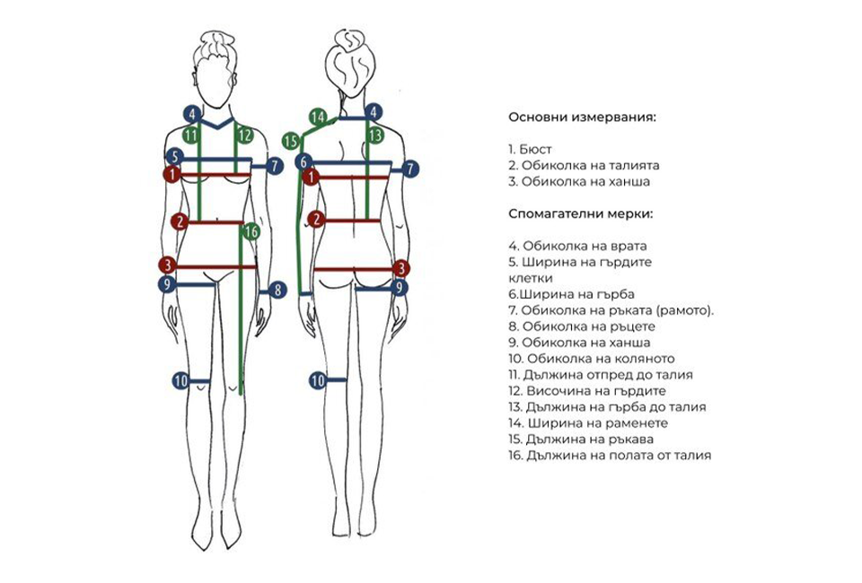 Измерва се в най-тясната точка на талията точно хоризонтално, но без измервателната лента да е стегната.
