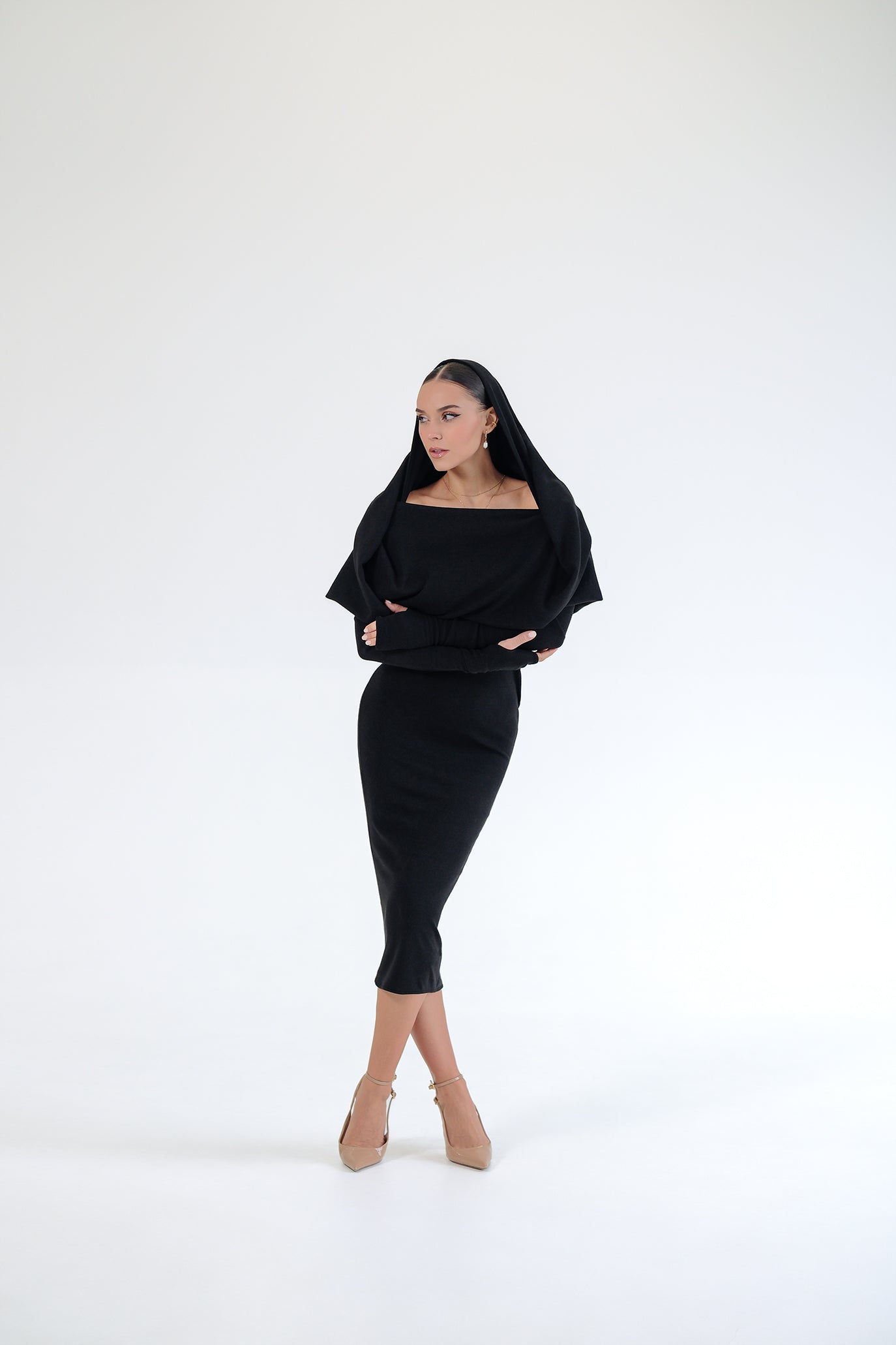 Тази рокля е олицетворение на онзи тип елегантност, която не се нуждае от обяснения. Меката и еластична материя прилепва по тялото като втора кожа, подчертавайки извивките с лекота. Има тип шал, който може да се носи по различни начини. Придава чувственост, а вталеният силует и дължината до глезена правят модела подходящ както за вечерни събития, така и за ежедневието. Изключително комфортна за носене, благодарение на еластичната основа.