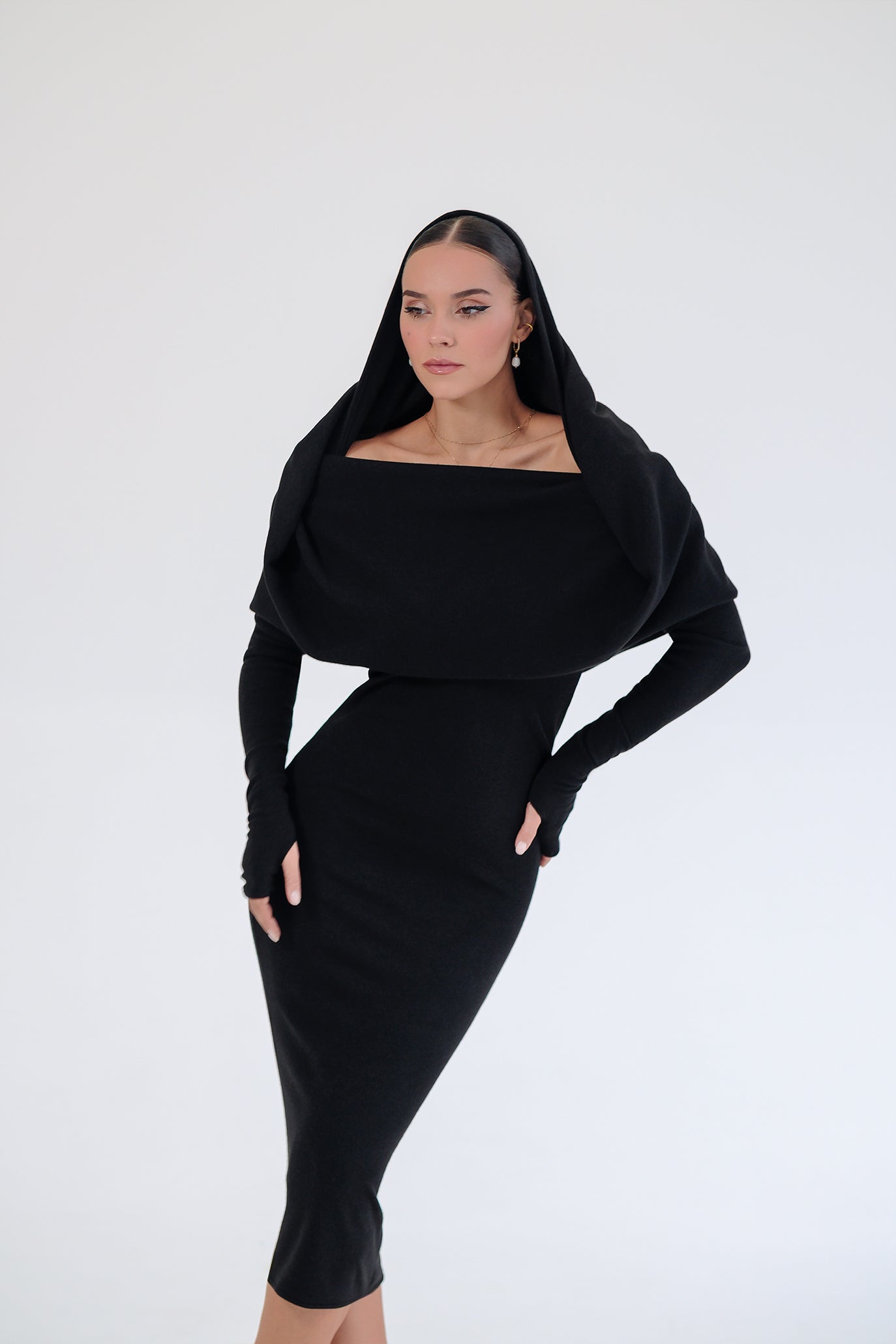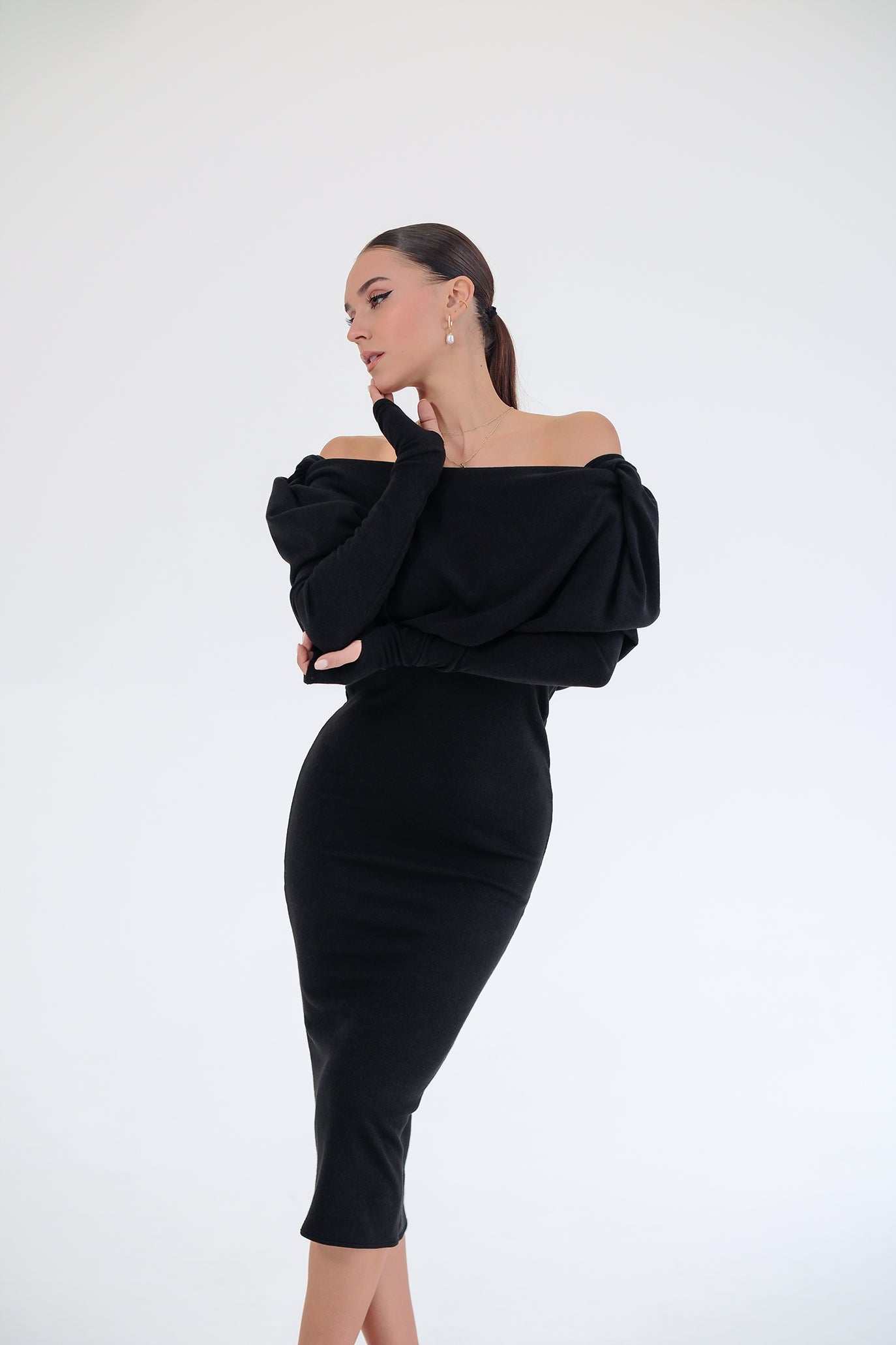 Дълга рокля с ръкави в черно: Linda