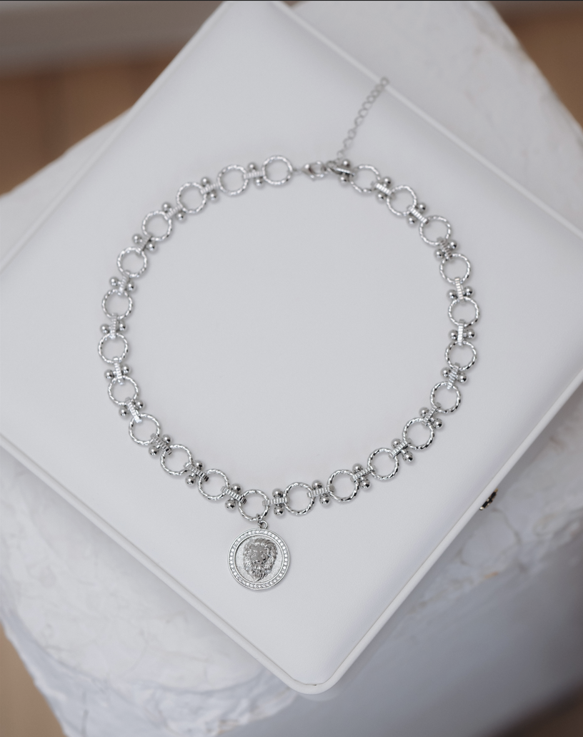 Висулка – кръгла висулка с изображение на лъв, обградено с циркони.