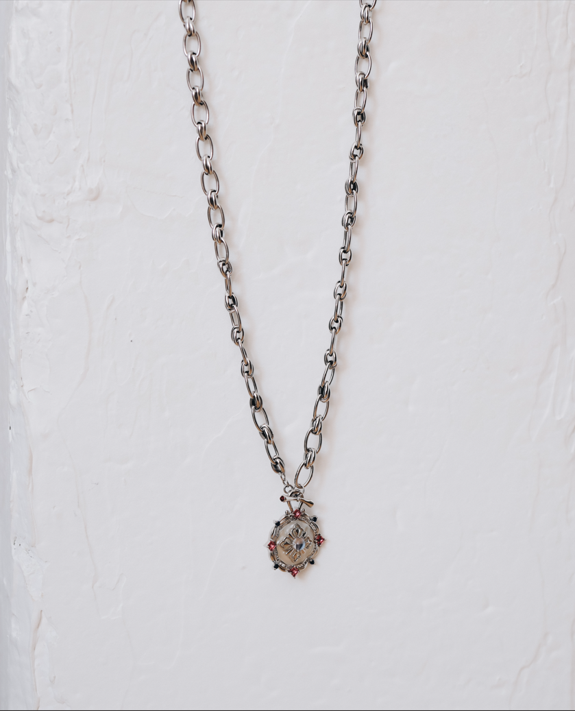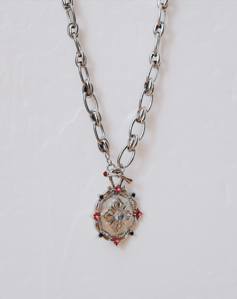 Колие с верига и висулка с циркони
