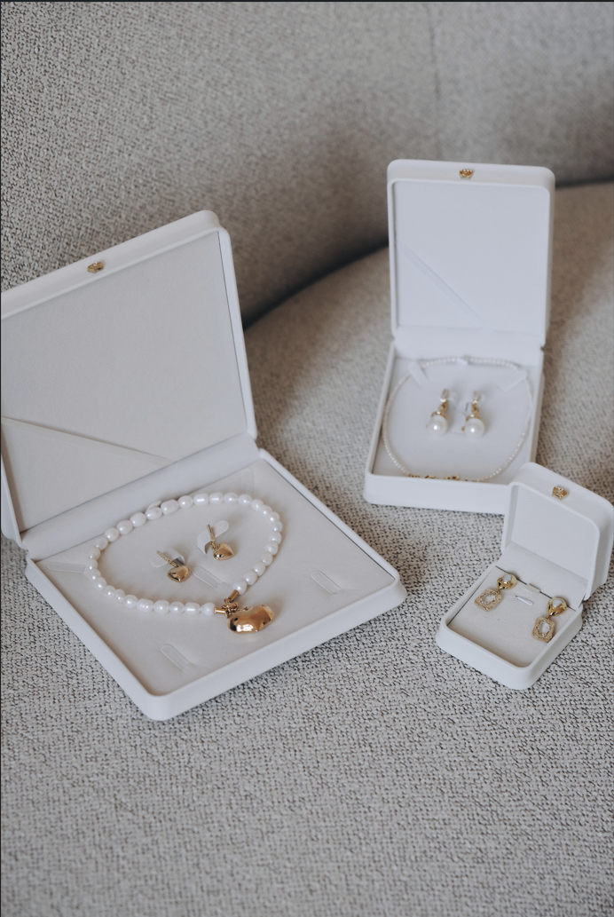 Висококачествена кутия за бижута, подходяща за подарък и за съхранение. За комплекти, колиета, гривни и обеци. Размери голяма кутия 19/19/4см, средна 16/11/4, малка 8/7/4см.