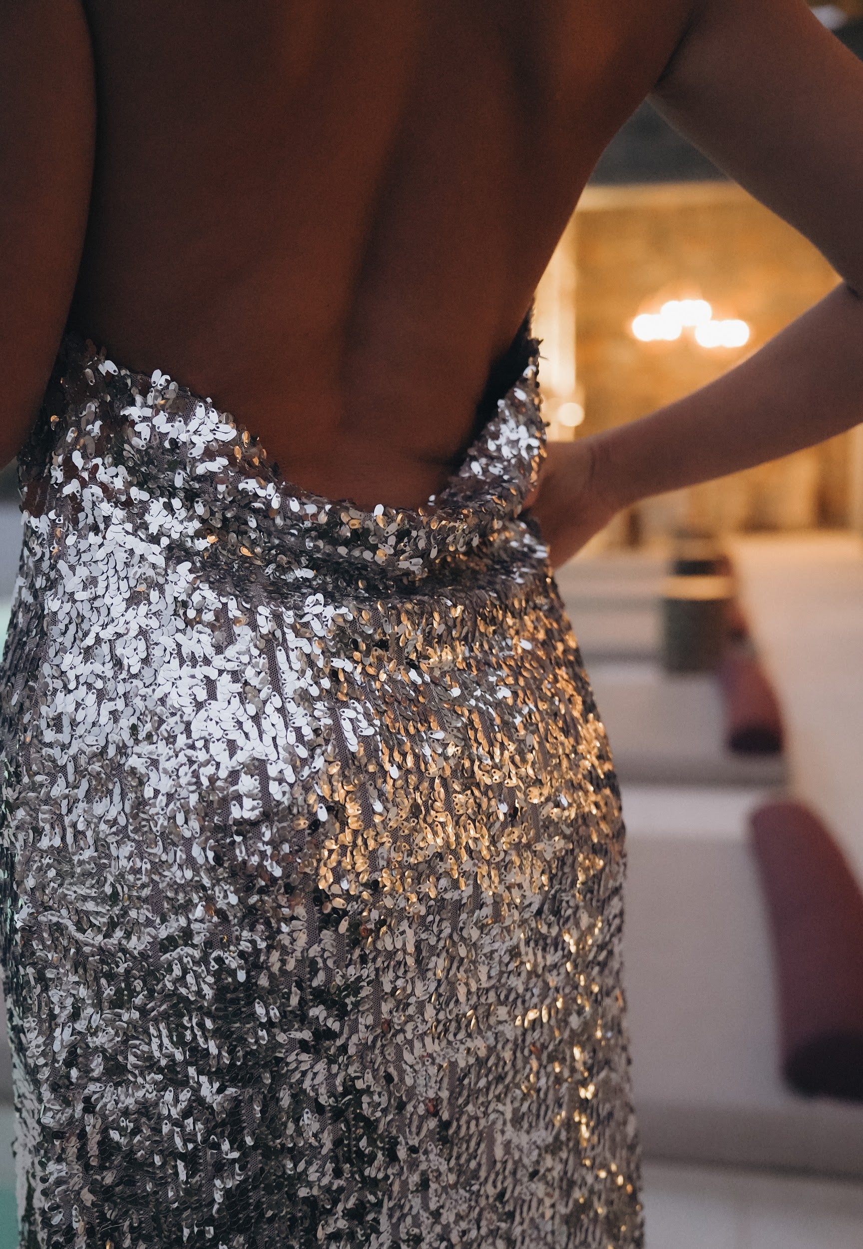 Официална рокля с гол гръб с пайети в сребристо: Grande Opera