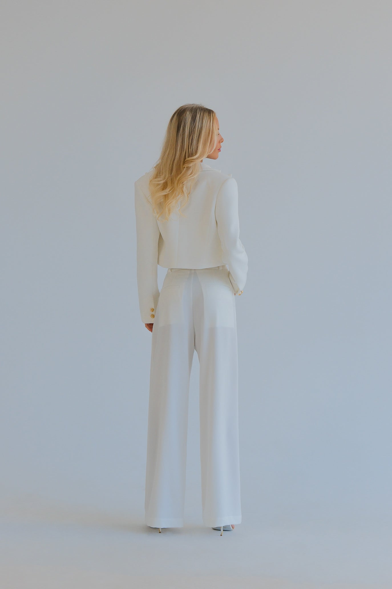 Модерен панталон с прецизна кройка и женствен силует. С дължина и с висока талия, които визуално издължават краката. Размери L и XL се изработват след поръчка и уточняване на мерките на клиента.