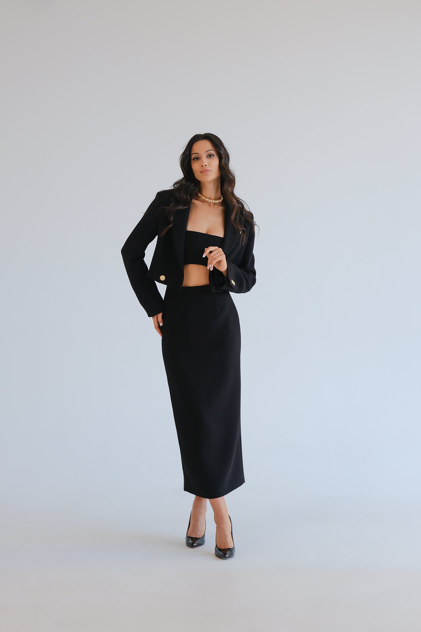 Пола за модерна, женствена версия. Полата молив е от специална плътна непрозираща материя, която оформя и подчертава талията и извивките на тялото. Визуално издължава издължава силуета, благодарение на кройката с висока талия.