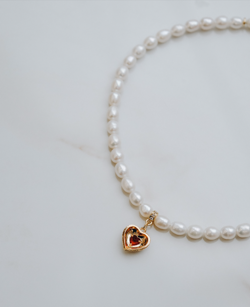 Колие с естествевни перли и висулка сърце