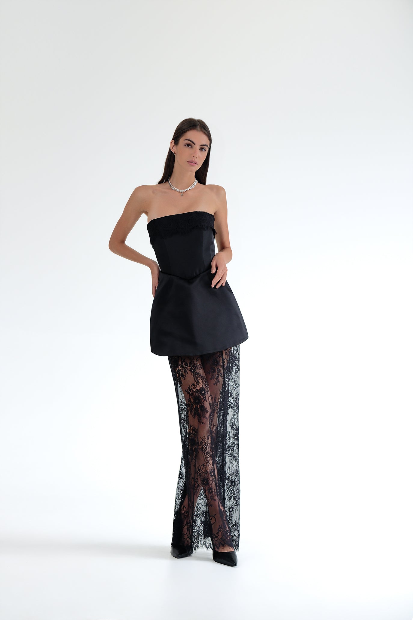 Рокля със сваляща се дантелена пола в черно: Fabia