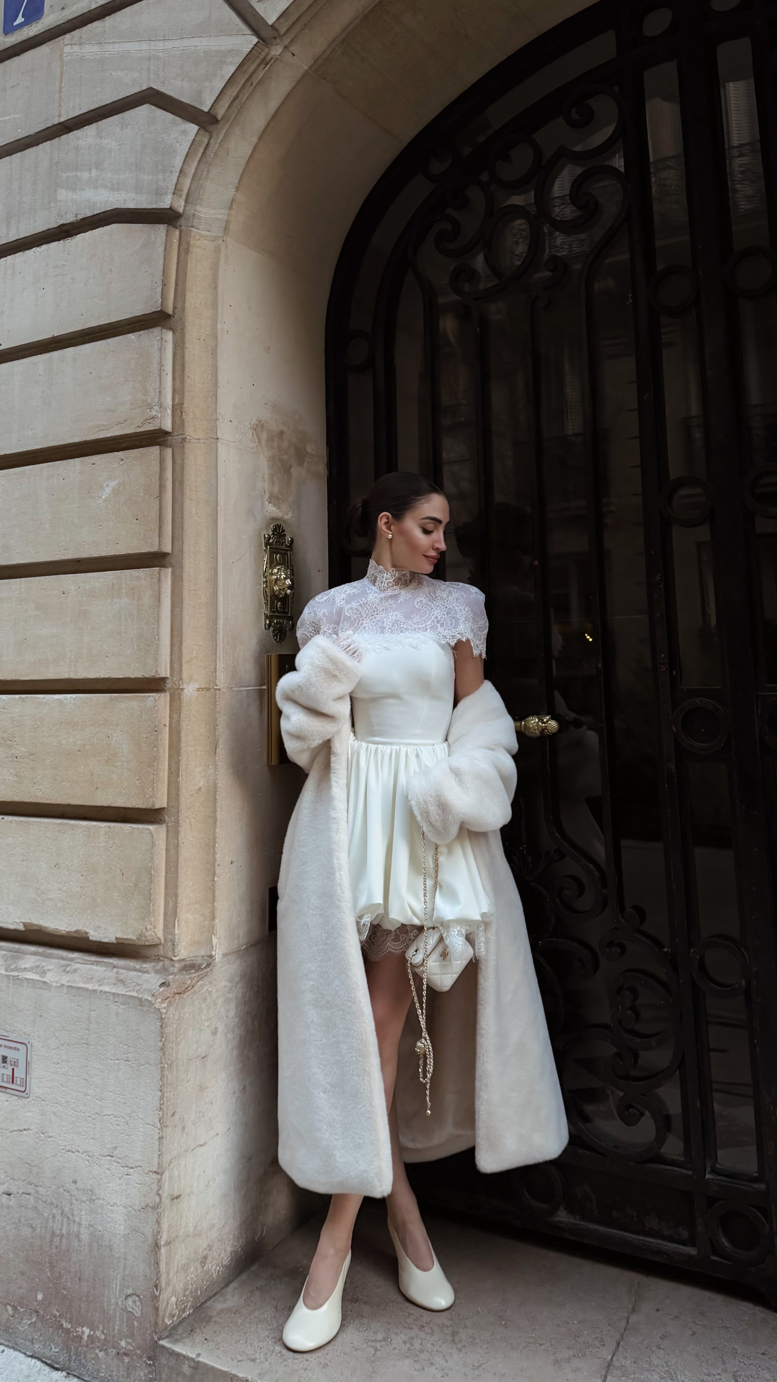 Нежна дантелена яка с флорални елементи, която придава неповторима елегантност и присъстие. Перфектно допълнение към всяка рокля или корсет, тя оформя изискана линия на деколтето, акцентирайки на врата с елегантен, винтидж ефект. Яката е с ефирен и женствен вид, придаващ класическо очарование и е идеален избор за специални поводи и официални събития.