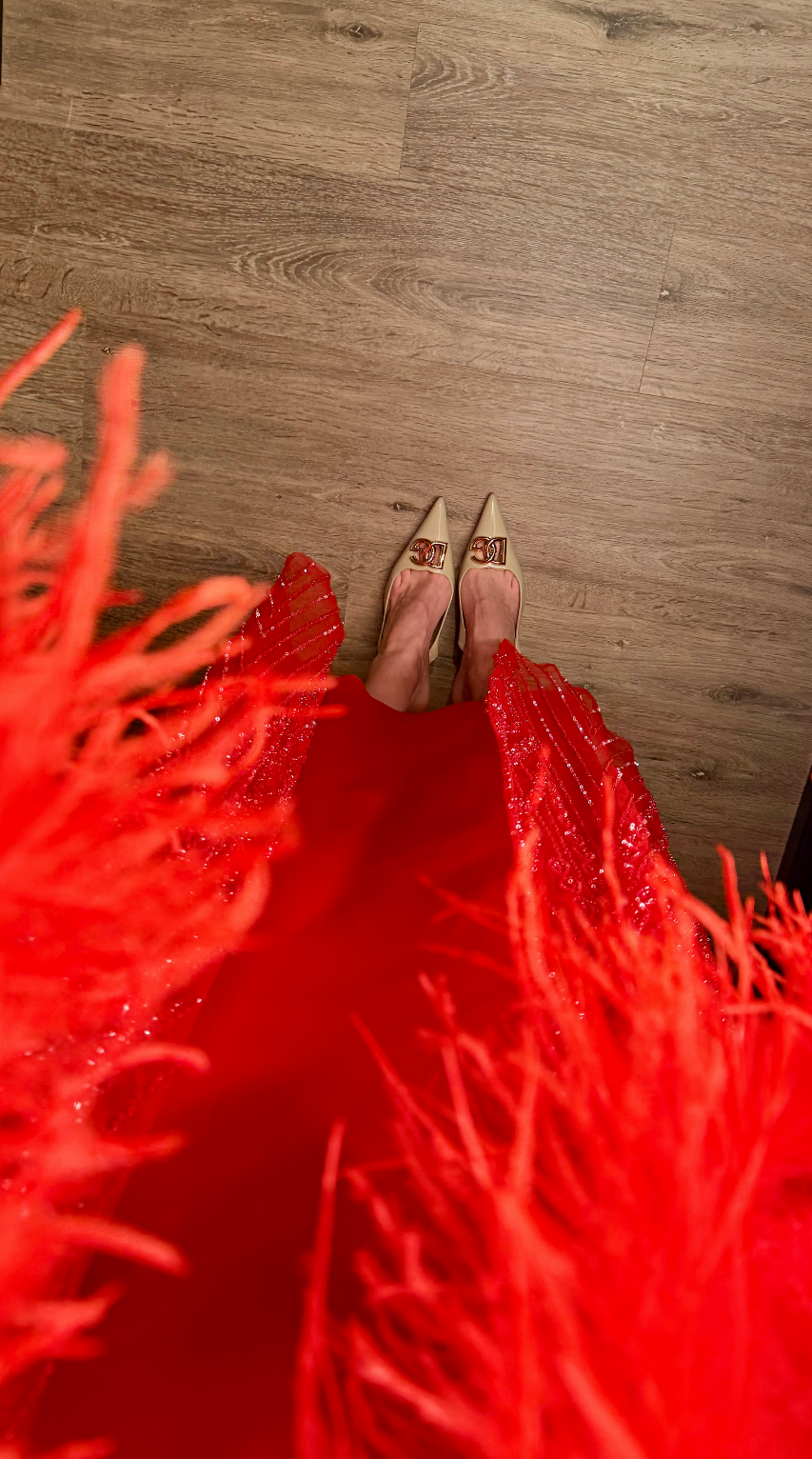 Изискана рокля, особено подходяща за луксозни вечерни събития. Изцяло ръчна изработка. Роклята е от висококачествен сатен и с кройка тип нощница - свободна и удобна, падаща по тялото. Отзад е с кръстосани презрамки, които елегантно подчертават гърба.