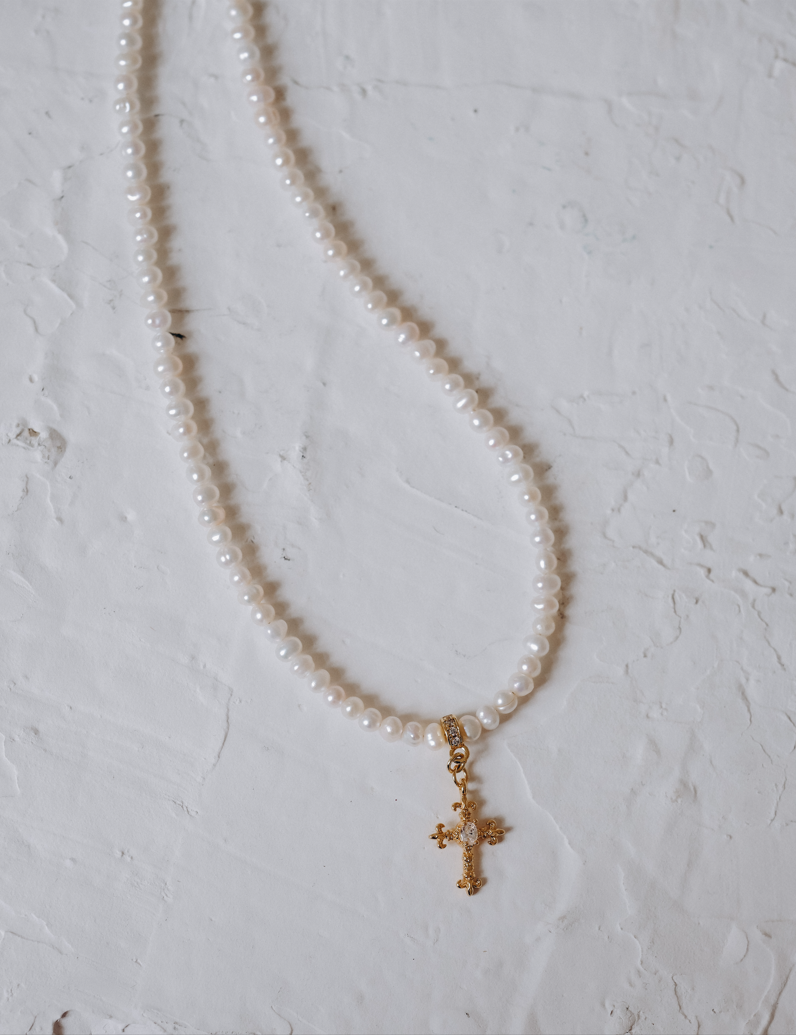Чокър с естествени перли и кръстче