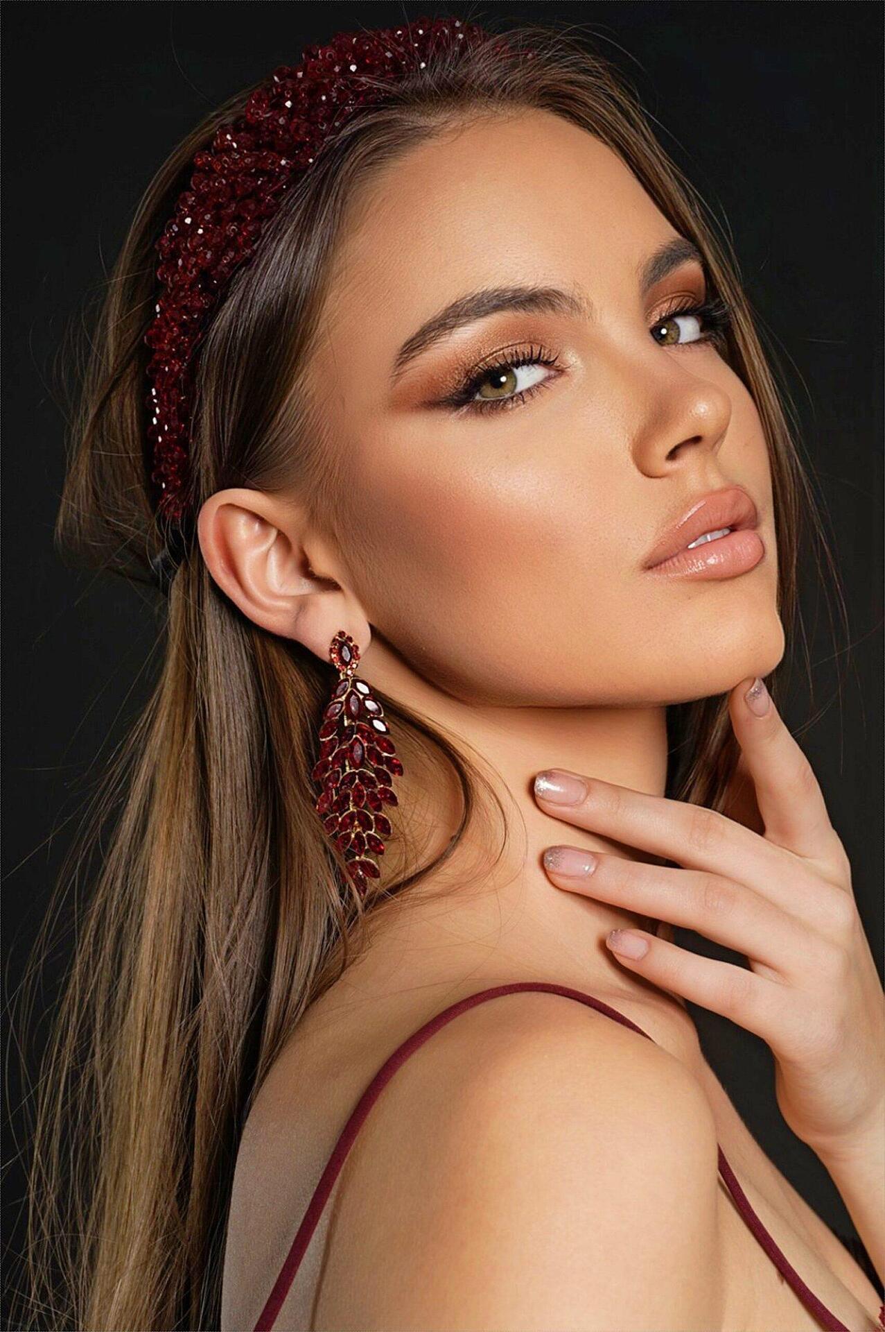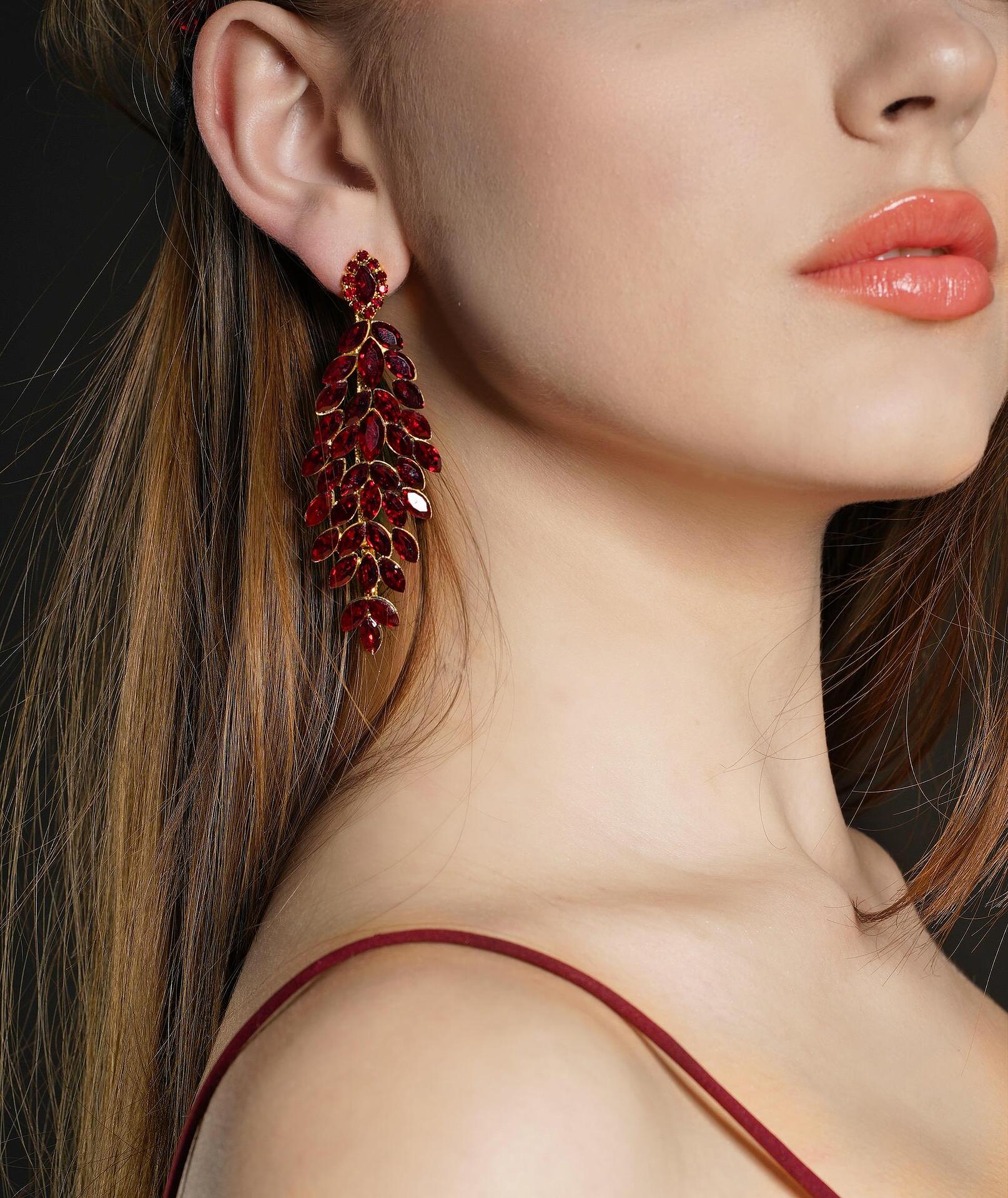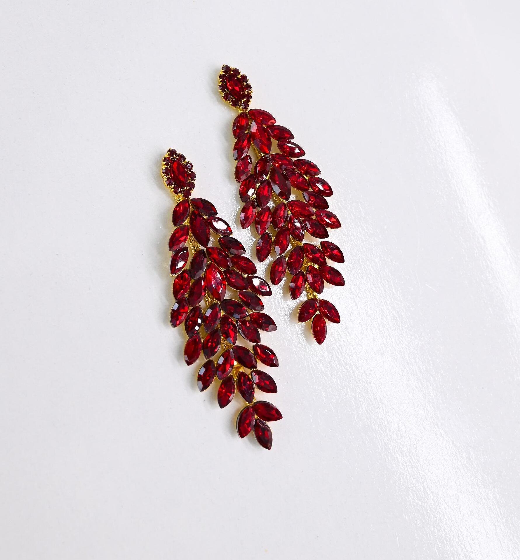 Обеци с кристали. Подходящи за всякакви поводи. Предлагат се и в други цветове. Ръчно изработени от висококачествени материали. Закопчават се с винт. Дължината им е около 8 см.